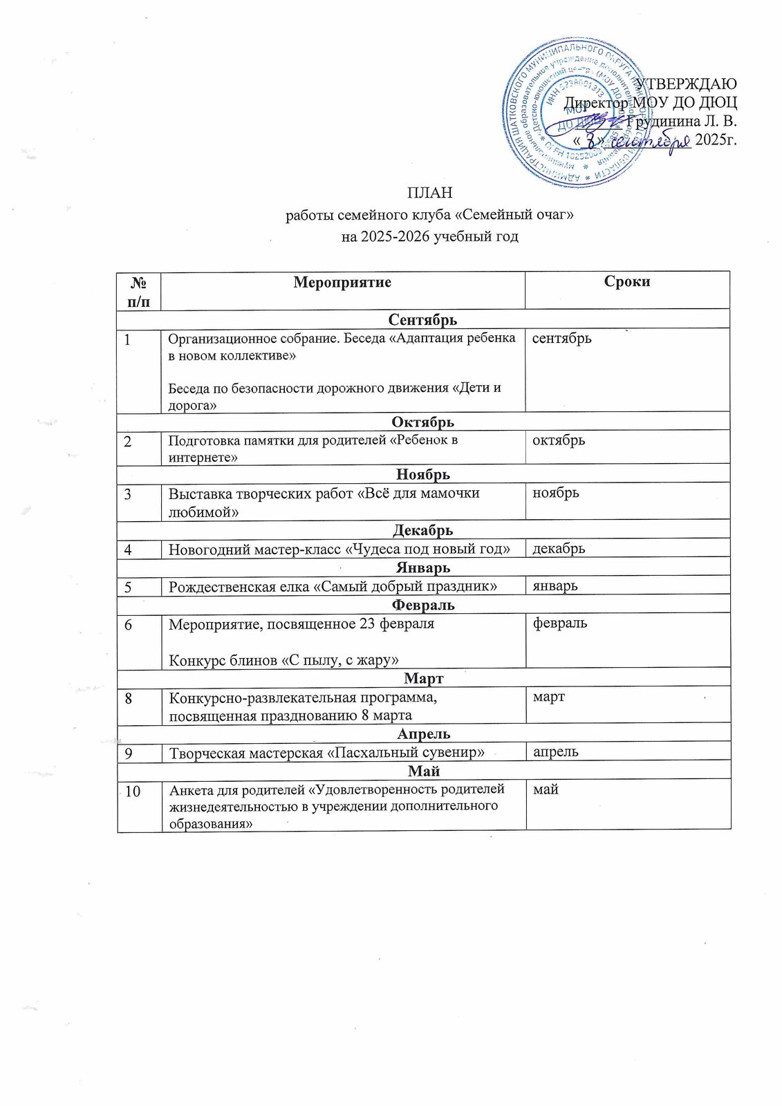 Программа деятельность данного клуба разработана на основе Концепции государственной семейной политики РФ на период до 2025 года (распоряжение Правительства РФ от 25.08.2014 № 1618-р) и с учетом поставленных задач в Стратегии развития воспитания в РФ на период до 2025 года (распоряжение правительства РФ от 29.05.2015г. № 996-р)