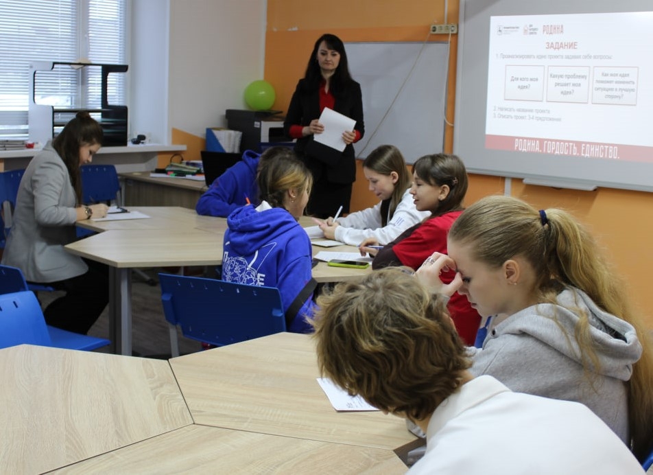Затем участники переместились в учебный класс, где состоялась основная часть совета — занятие на тему социального проектирования. Алёна Александровна подробно рассказала ребятам, что такое социальный проект и каким образом он отличается от обычного мероприятия. Особое внимание уделялось таким аспектам, как выбор названия проекта, правильная формулировка цели, определение целевой аудитории, выявление актуальности предложенной идеи и другое.