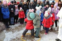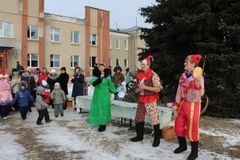 Ребята из Молодежной палаты (Дербенев Владислав, Бурнаев Максим) исполняли роль скоморохов, радуя ребят веселыми конкурсами (петушиные бои, бой на мешках, снежный тир, бег на метлах, танцевальная эстафета, перетягивание каната), потехами и сладкими призами.
